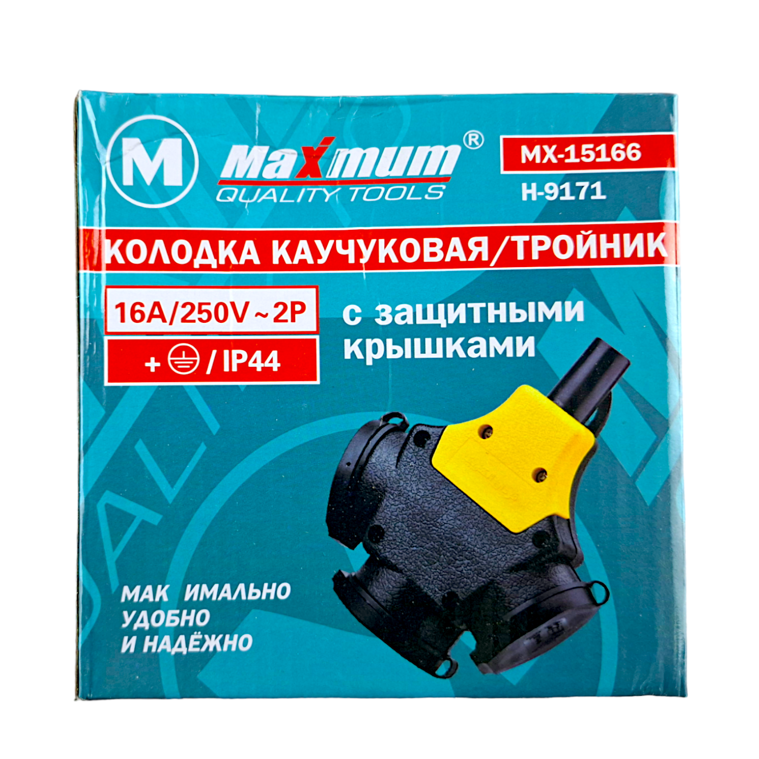 Тройная уличная элетророзетка (колодка) с защитными крышками выполнена из каучука и пластика и расчитана на 16 A.