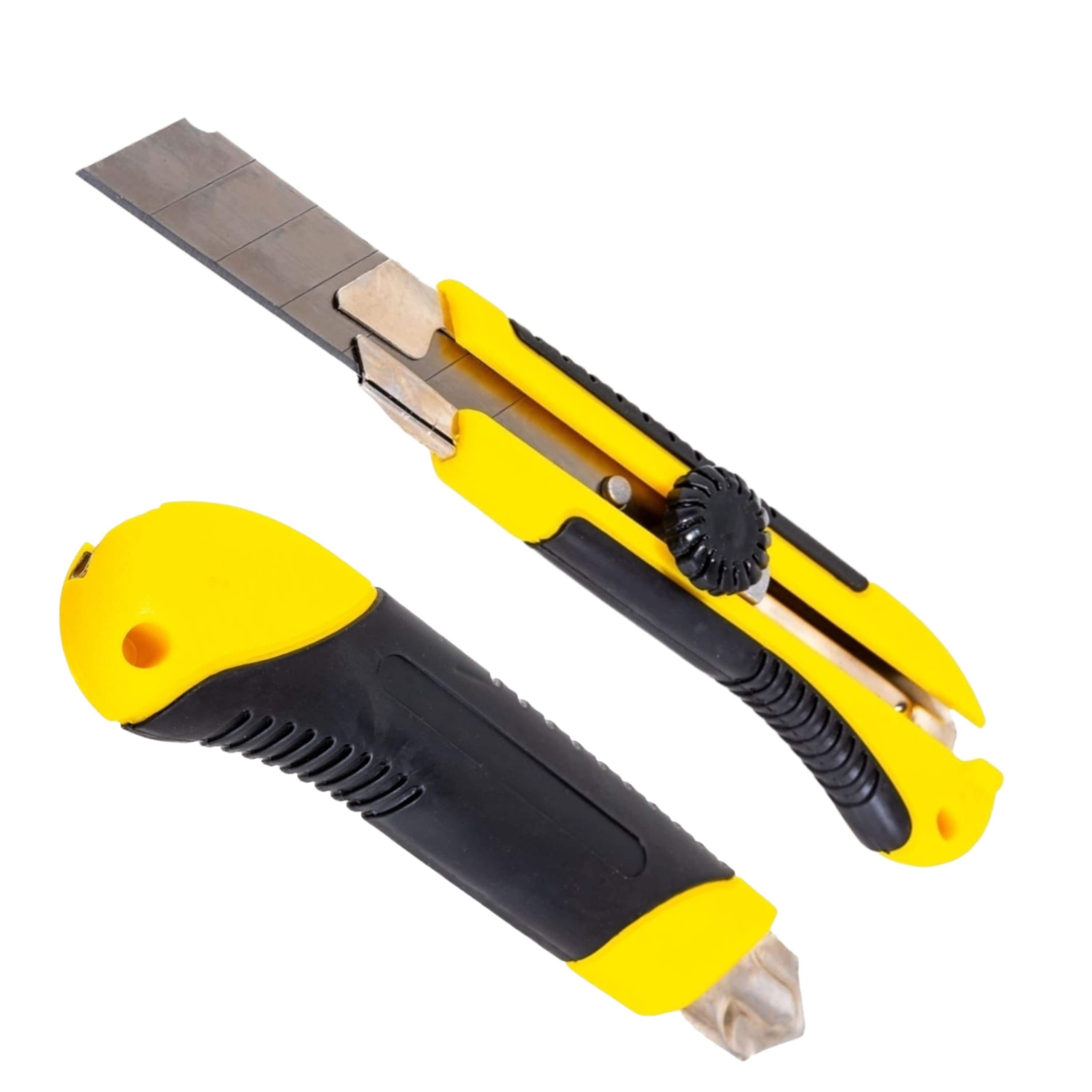 Нож канцелярский/строительный 25 мм с роликовой фиксацией лезвия от "Maximum Quality Tools" предназначен для разрезания бумаги, обоев, картона, ковролина, линолеума и т.п. Пластиковый корпус дополнен металлическими направляющими, которые надежно удерживают острое сегментированного лезвия. По мере использования отработанные концы лезвия легко отламываются.