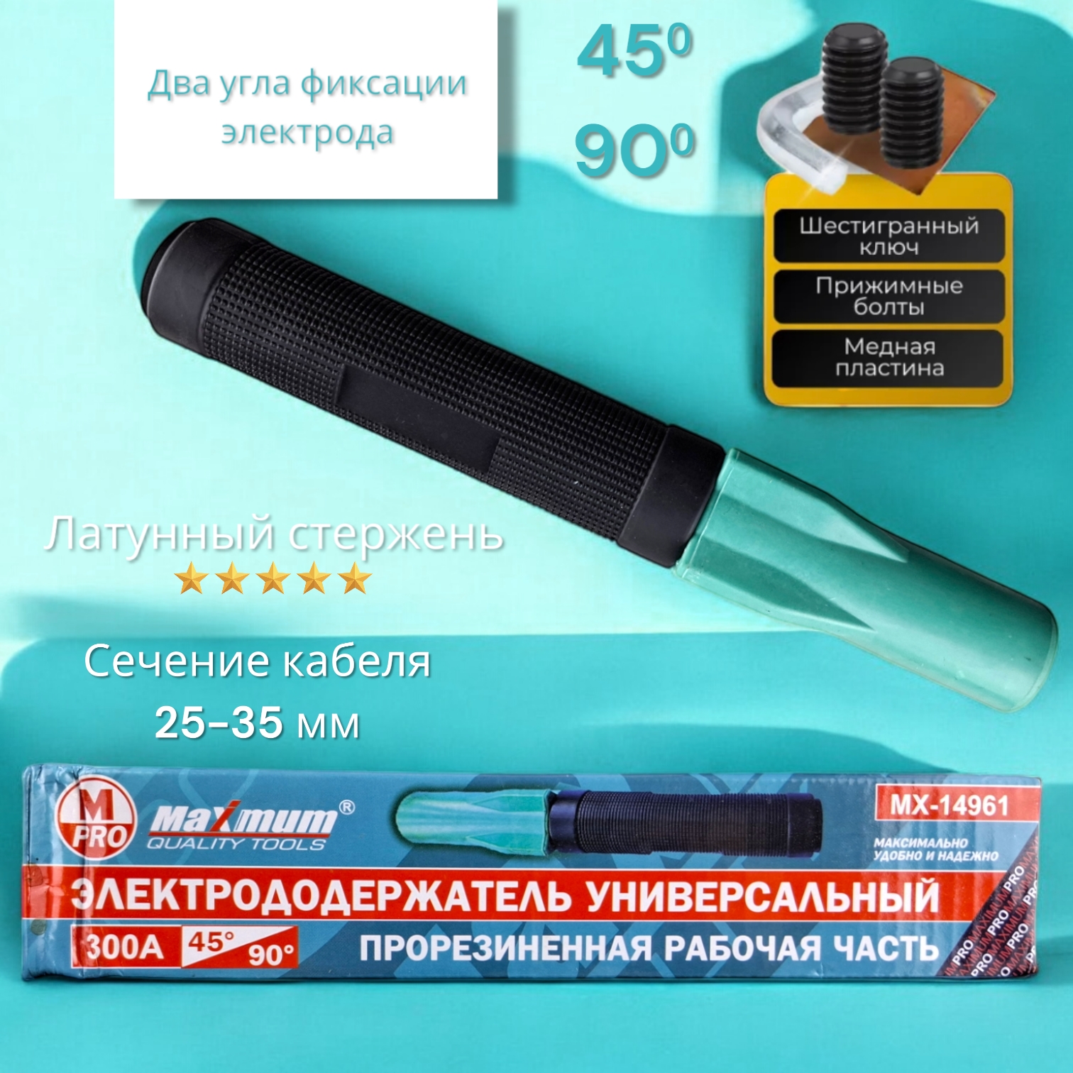 Винтовой электрододержатель от "Maximum Quality Tools" - это профессиональный аксессуар для ручной дуговой сварки, который обеспечивает надежное и безопасное крепление электрода.