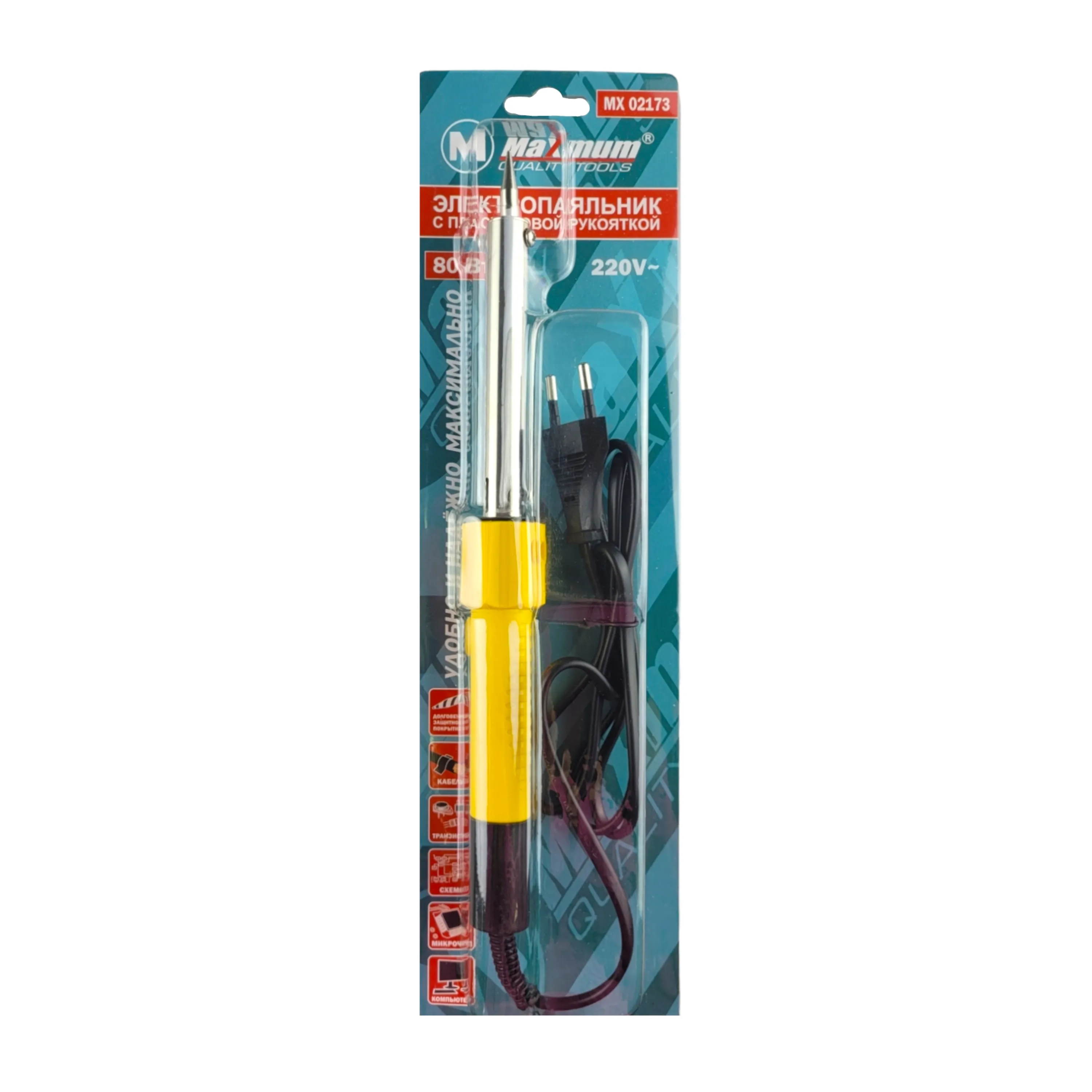 Паяльник с керамическим нагревателем 80 Вт предназначен для ручного монтажа радиоэлементов. Его можно использовать как в домашних условиях, так и в профессиональных лабораториях. Долговечное жало паяльника состоит из медного сердечника, покрытого слоем электролитически осажденного железа. Рабочая часть жала покрыта слоем олова, а остальная поверхность — хромирована.