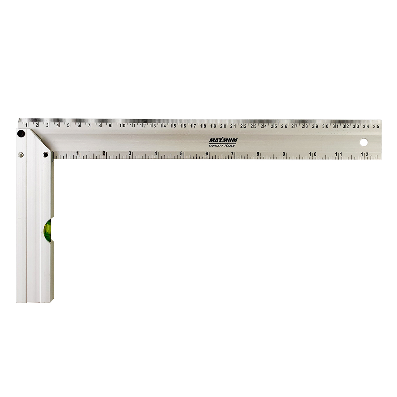 Алюминиевый угольник 350 мм от «Maximum» – это легкий и надежный измерительный инструмент, в ручку которого встроен пузырьковый уровень.