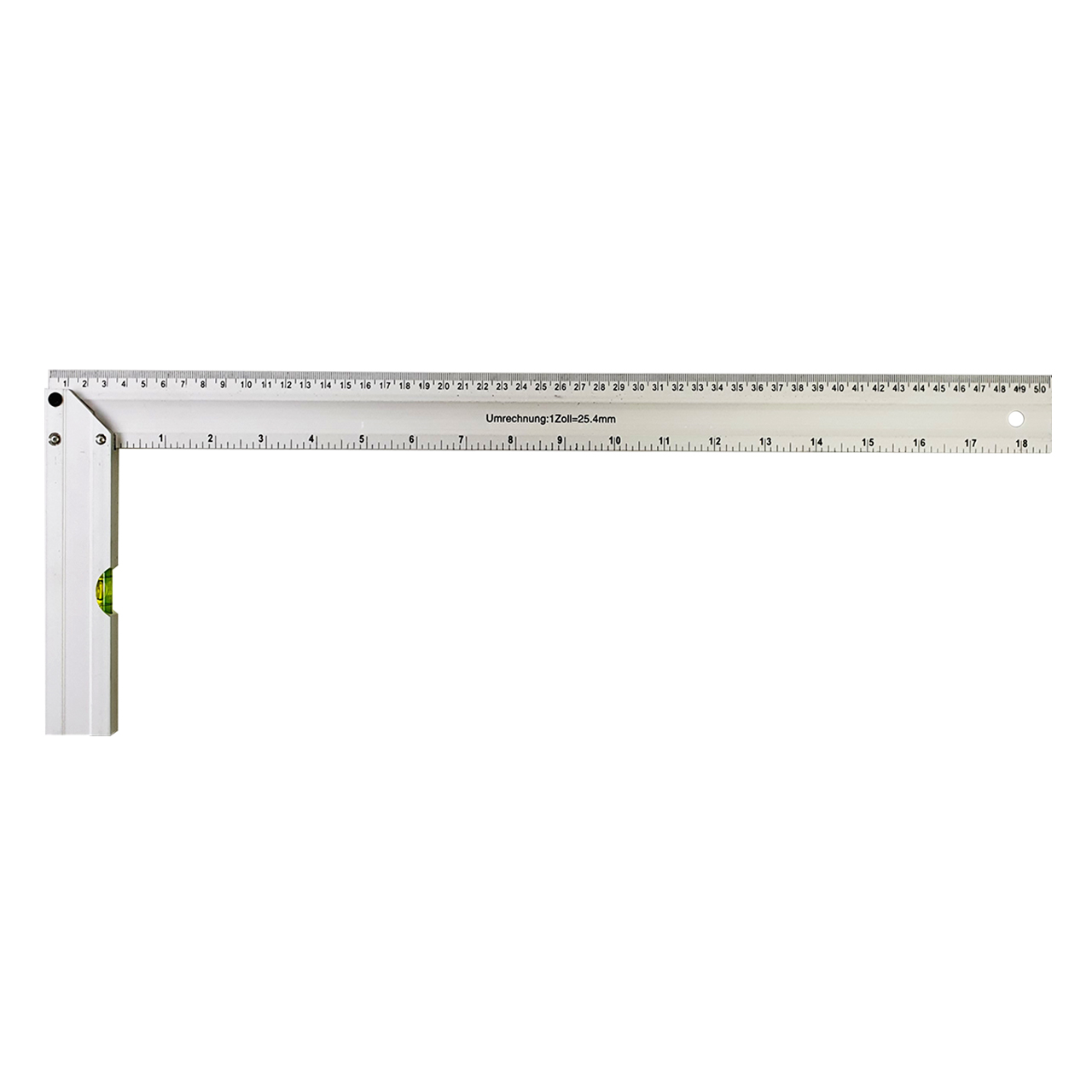 Угольник 500 мм обеспечивает высокую надежность измерительных работ благодаря яркой и четкой шкале сантиметры/дюймы.