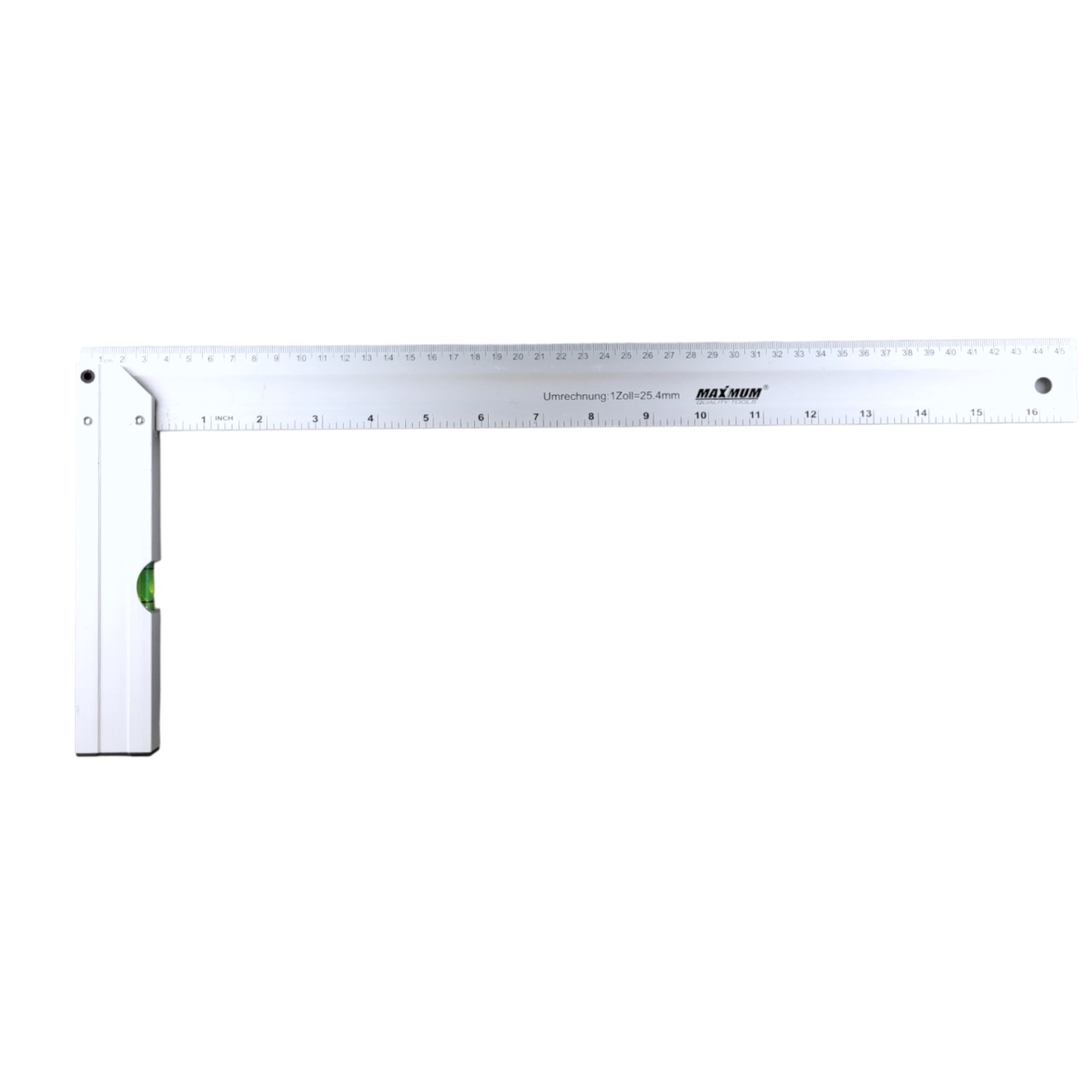 Угольник строительный 450 мм обеспечивает высокую надежность измерительных работ благодаря яркой и четкой шкале сантиметры/дюймы.