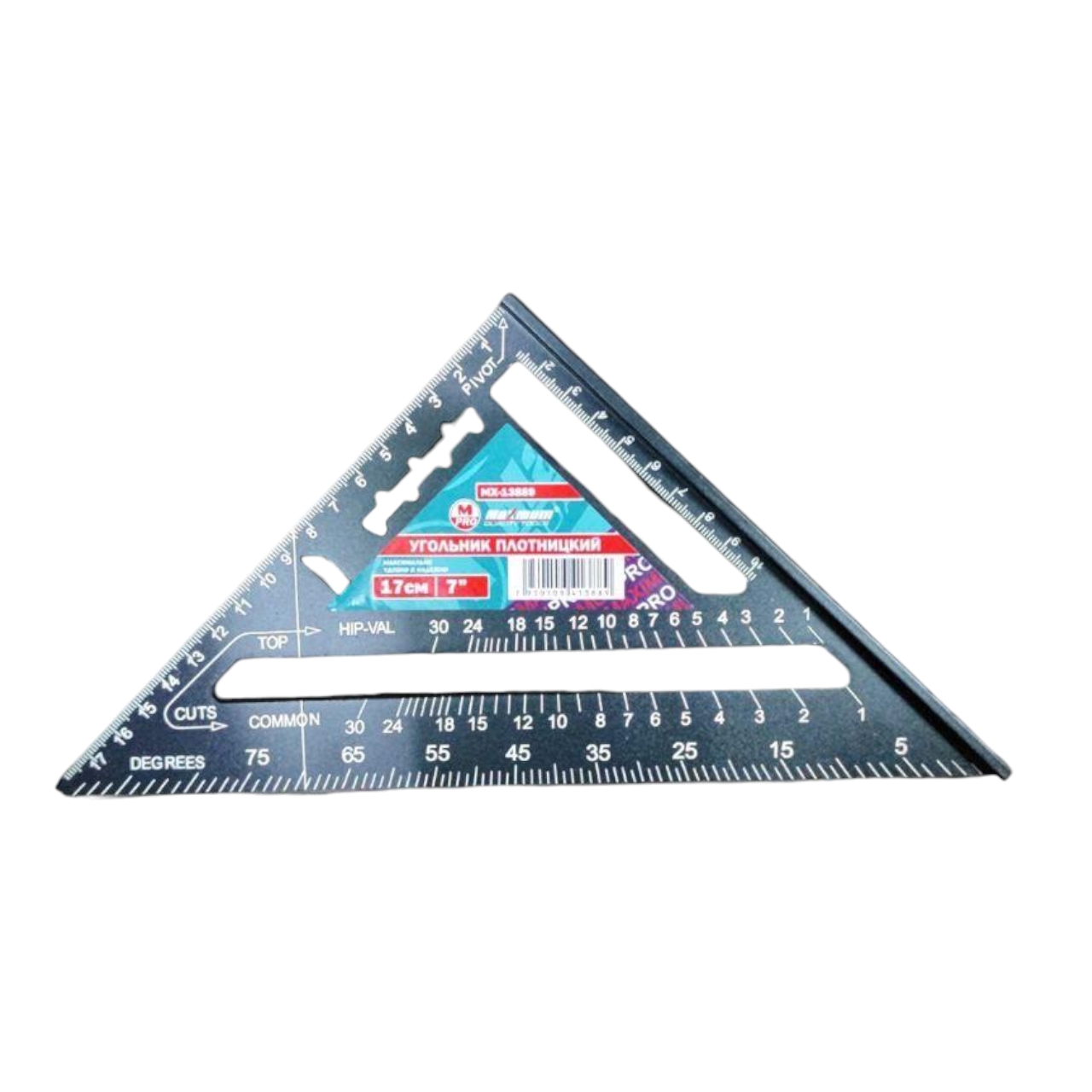 Инструмент выполнен из алюминия, поэтому он лёгкий и прочный. Размеры треугольника 18 см х 18 см х 26см.