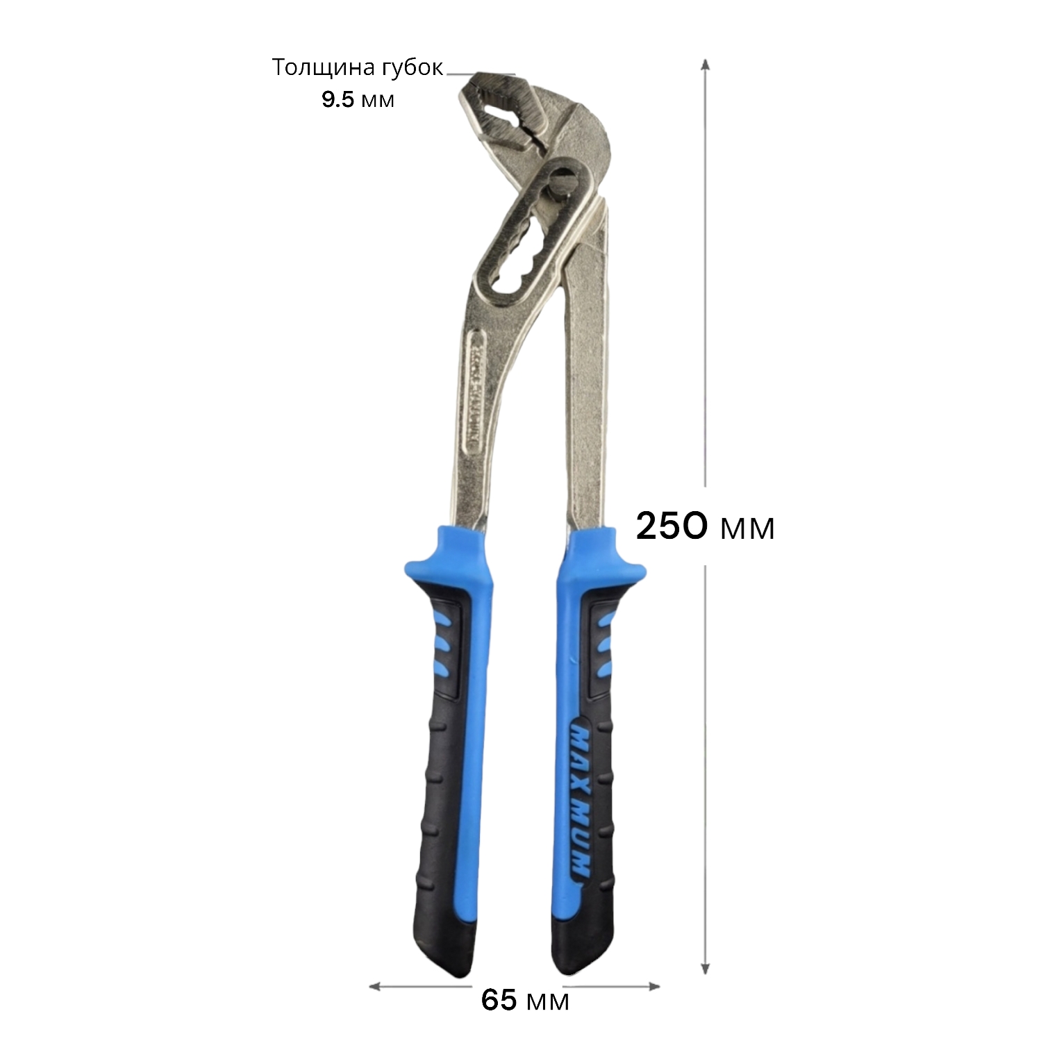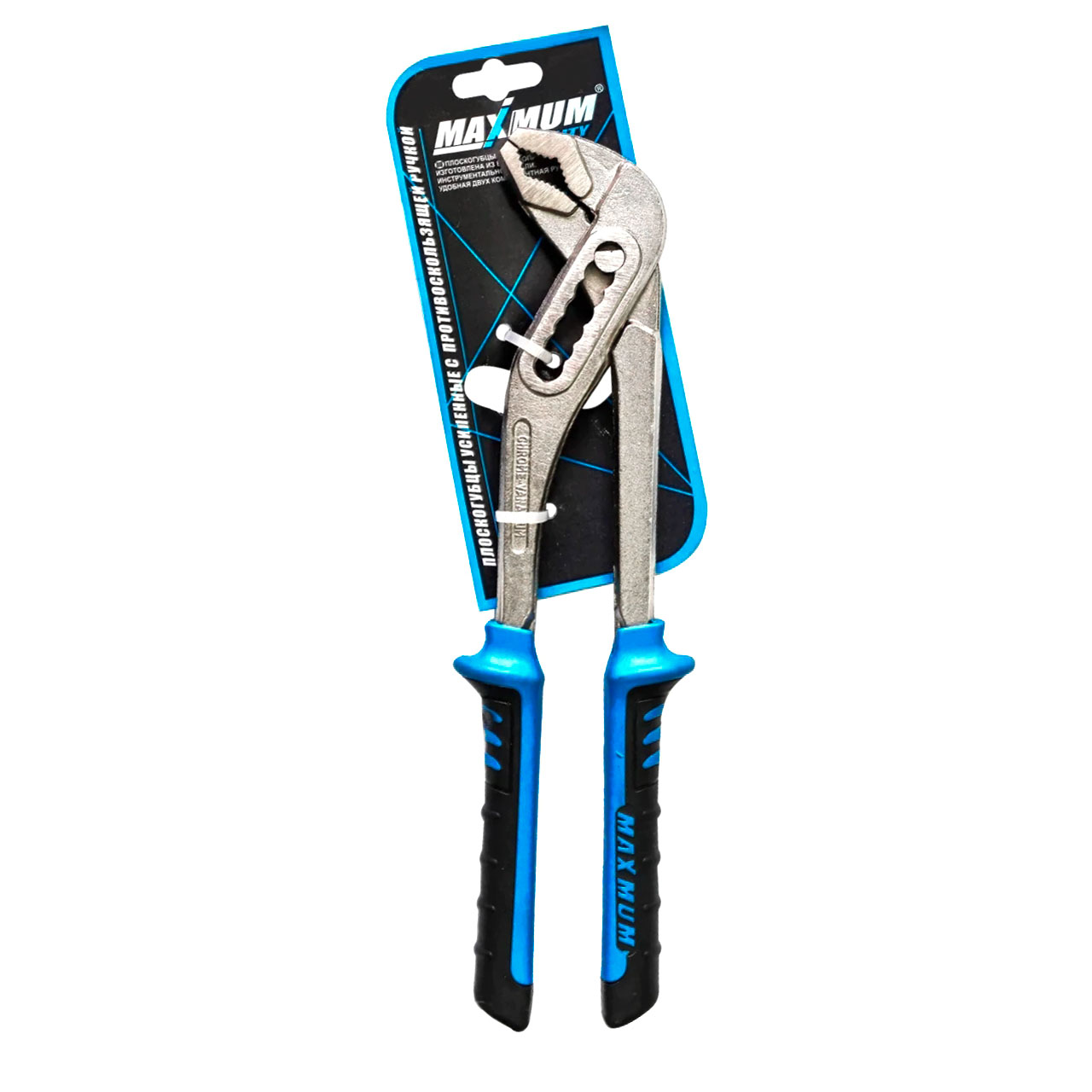 Клещи сантехнические переставные 250 мм «Maximum» имеют прочные и острые насечки на губках, обеспечивающие захват предметов, которые не имеют специальных рабочих поверхностей. Клещи предназначены для захвата различных по форме и размерам предметов, могут использоваться в качестве трубного или разводного ключа. Габаритная длина клещей составляет 250 мм, а рабочий ход от 0 - до 60 мм. Переставные усиленные клещи изготовлены из хромованадиевой стали, поэтому они прочны и устойчивы к повреждениям. Двухкомпонентная эргономичная рукоять не скользит в руке, что обеспечивает лучший контроль над инструментом.