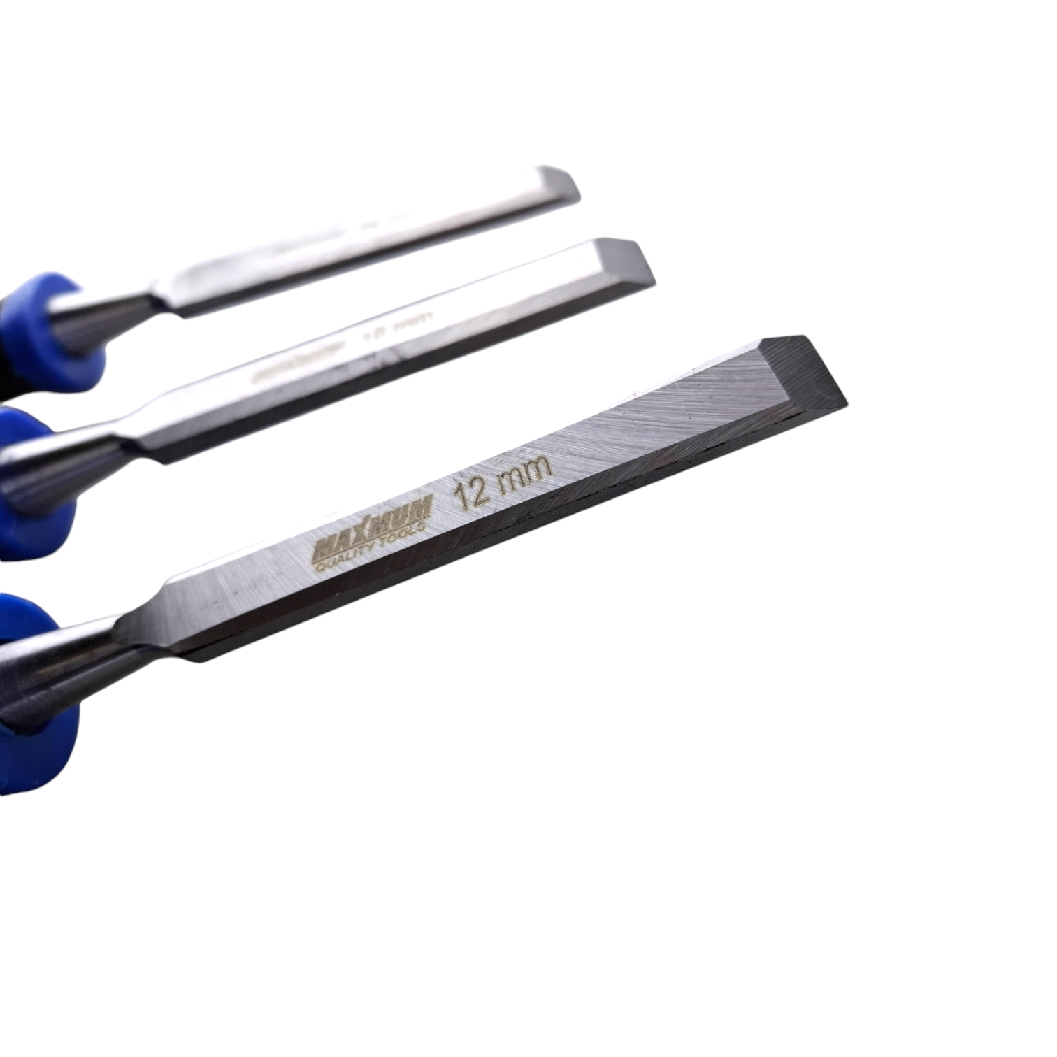 В комплект входит три стамески шириной 12, 19 и 25 мм.