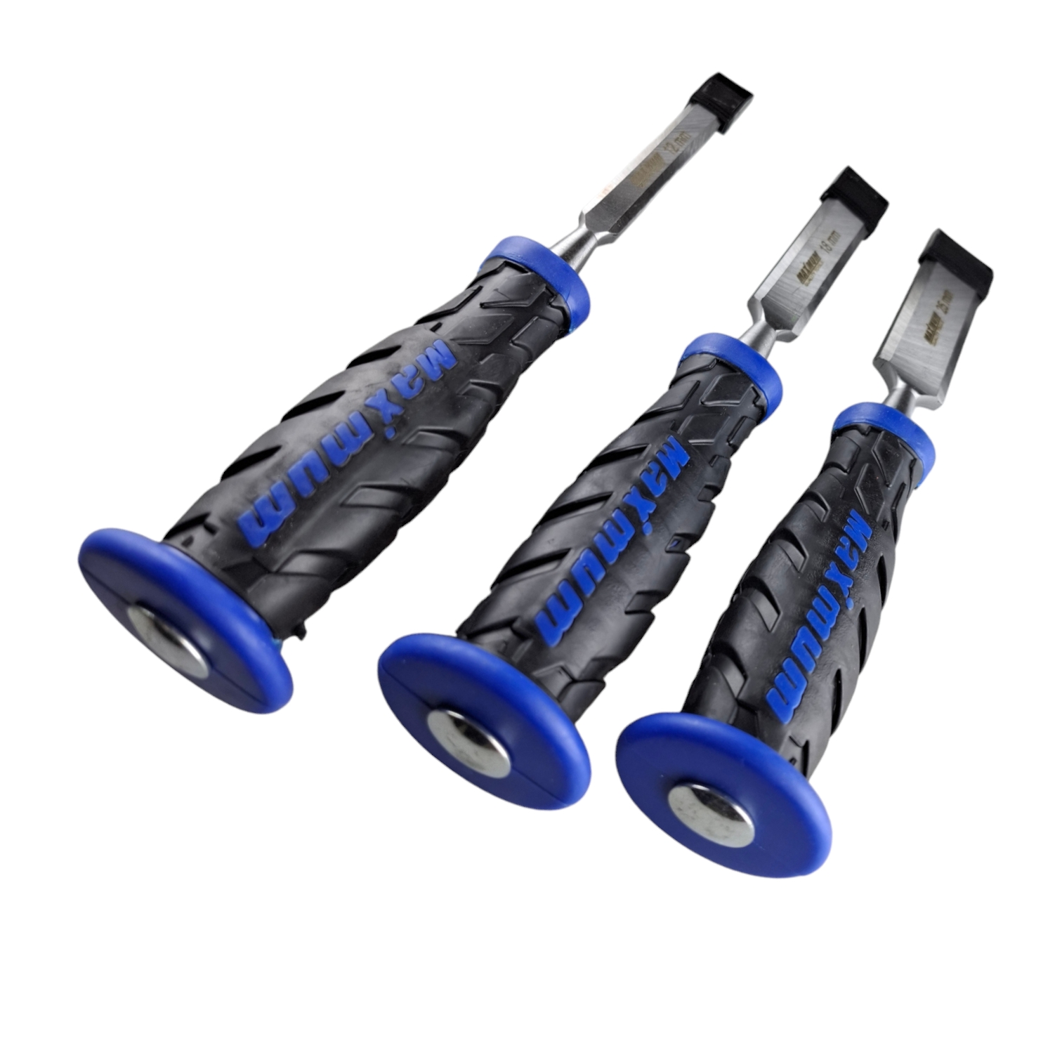 Набор стамесок из 3 предметов "MAXIMUM" предназначен для проведения столярных работ, включая первичную обработку, выборку пазов и очистку углублений деревянных конструкций. Подходит как для бытовых, так и профессиональных работ.