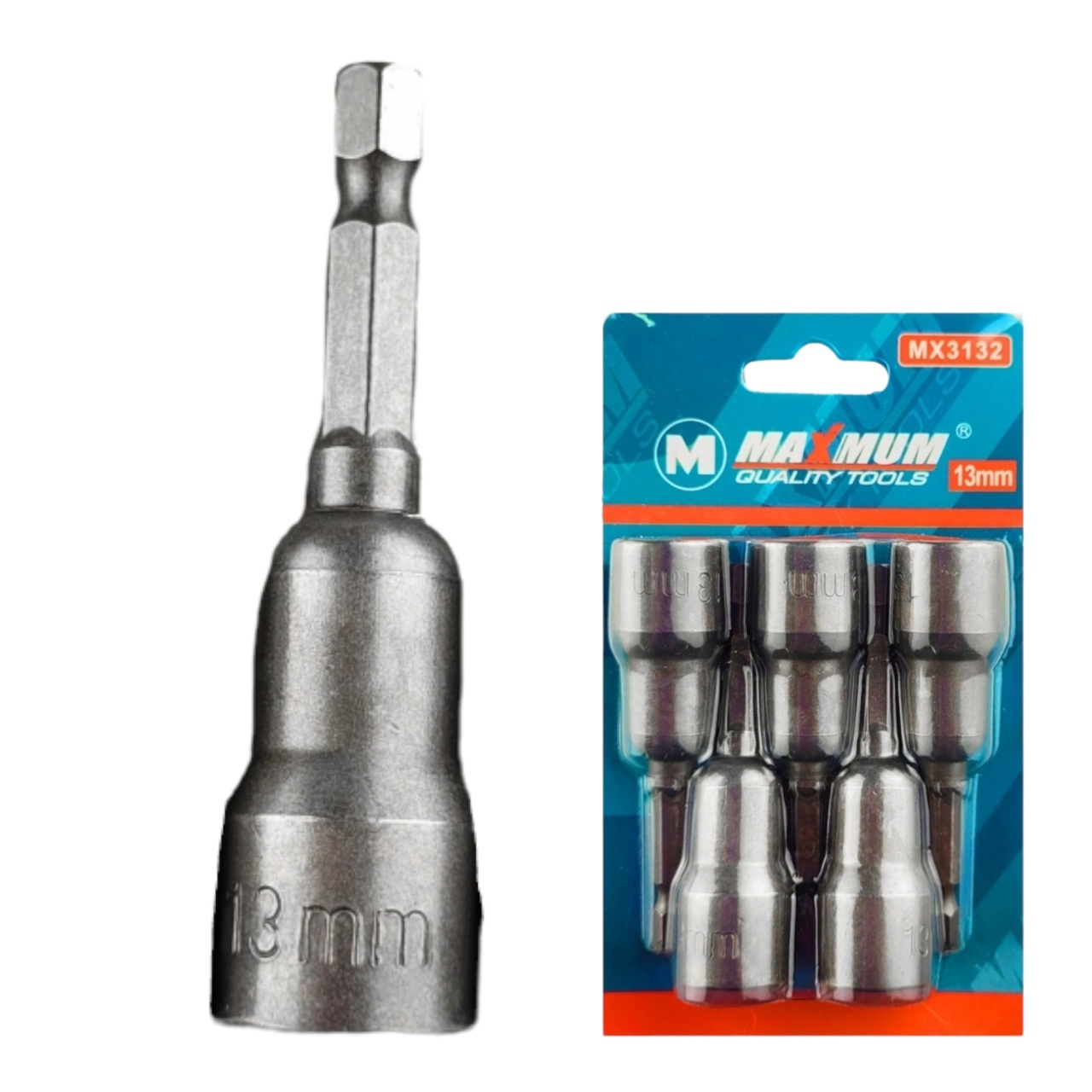 В набор бит 13 мм от "MAXIMUM" входит 5 насадок длиной 65 мм. Магнитный держатель гарантирует надежную фиксацию шурупа в головке биты и избавляет мастера от необходимости придерживать крепеж. Пескоструйная обработка и защитное покрытие повышают устойчивость насадок к износу. Форма колокольчика и магнитная шестигранная вставка позволяют надежно удерживать бит на нужном месте.
