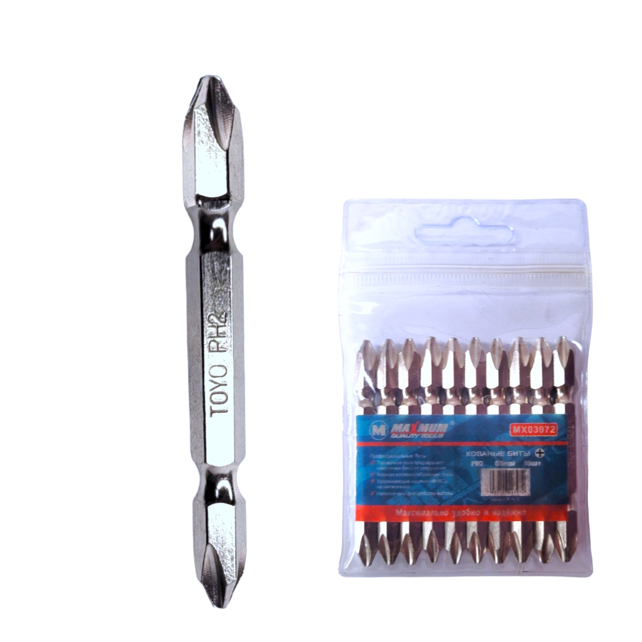 Набор бит кованых PH2, 65 мм, 10 штук, "TOYO" изготовлен из высокопрочной легированной стали S2.