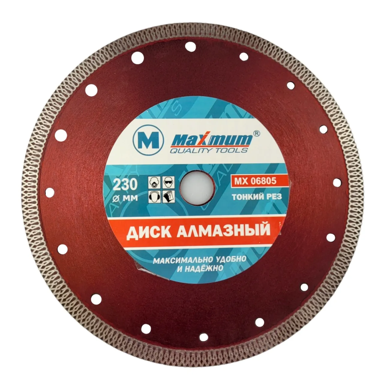 Диск турбо с алмазной кромкой 230 мм от "MAXIMUM Quality Tools" тонкий рез из серии Professional подходит для сухой резки на угловой шлифовальной машине и отрезной пиле.