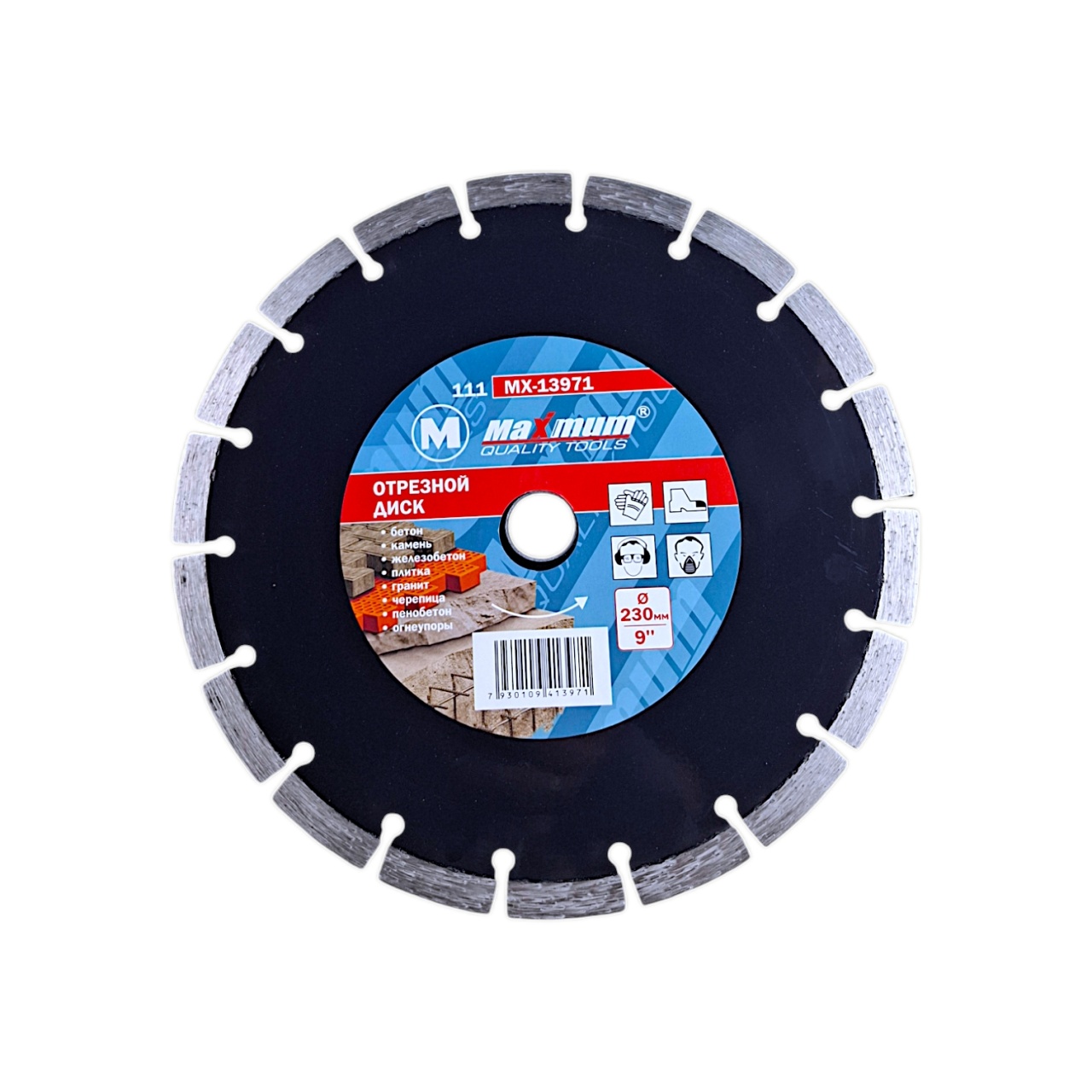 Алмазный отрезной диск 9" MAXIMUM MX 13971 — это профессиональное решение для интенсивных работ по резке бетона, железобетона, натурального и искусственного камня, а также кирпича. Диск создан для использования с мощными угловыми шлифовальными машинами («болгарками»).
