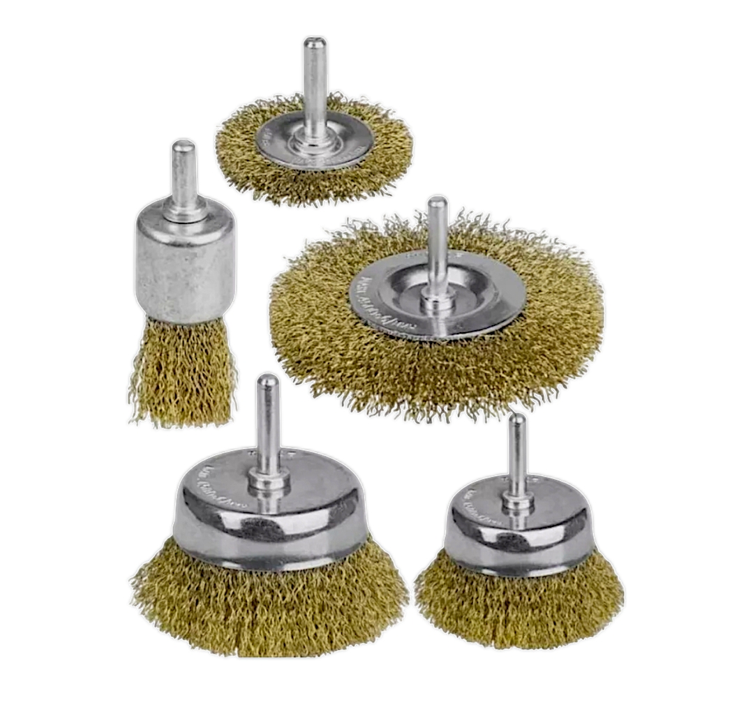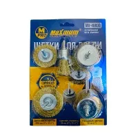 Набор корщеток с волнистой латунированной щетиной длиной 25 мм от "Maximum" отлично подойдут для снятия с поверхности грязи и ржавчины. Хвостовик цилиндрический 6 мм.