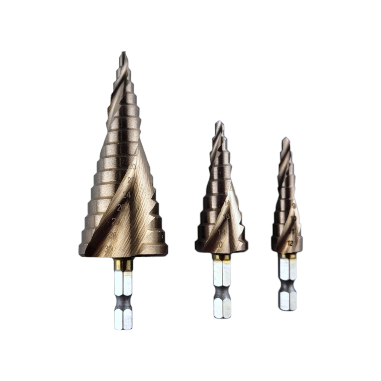 Набор спиральных фрез HSS 4241 от "MAXIMUM QUALITY TOOLS" на 4-12 мм, 4-20 мм ,4-32 мм предназначен для работ с металлическими поверхностями. Сверла имеют ступенчатую спиральную конструкцию, что значительно расширяет диапазон их действия и повышает точность выполнения работ. Данные насадки используются на дрелях для обработки листовой стали, цветных металлов, пластмассы. Оснастка отлично подходит для создания идеально круглого по форме отверстия, без заусенцев и одновременно очищенного от стружки. Применяются без предварительного сверления даже в самых тонких металлах. Угол заточки составляет 118 градусов, что обеспечивает максимальную эффективность рабочего процесса и позволяет создавать отверстия точно и аккуратно, исключая деформацию обрабатываемого материала. Острая режущая кромка конусных сверл предназначена для получения отверстий в металле различного диаметра без перестановки режущего инструмента. Набор содержит ступенчатые сверла HSS на 9 и 15 ступеней с шагом в 2 — 3 мм.